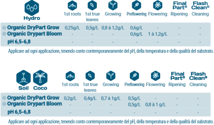 Compatible with all cultivation methods (soil, coco, hydroponics) and irrigation systems - manual or drip (fertigation) - Organic DryPart® has been rigorously tested on different crops to ensure optimum performance.