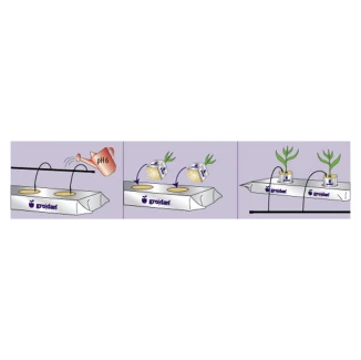 La Gro-Slab se puede utilizar para el cultivo en macetas Libra o con bandejas con sistemas de goteo temporizado. Para el cultivo hidropónico mejora la limpieza de los componentes hidráulicos y de las soluciones nutritivas. Puede alojar hasta 5 - 6 plantas.