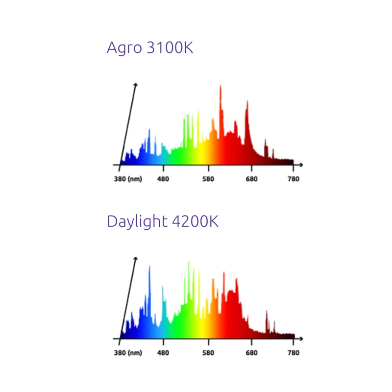 - CCT (K): 3100K (Agro) o 4200K (luz diurna)