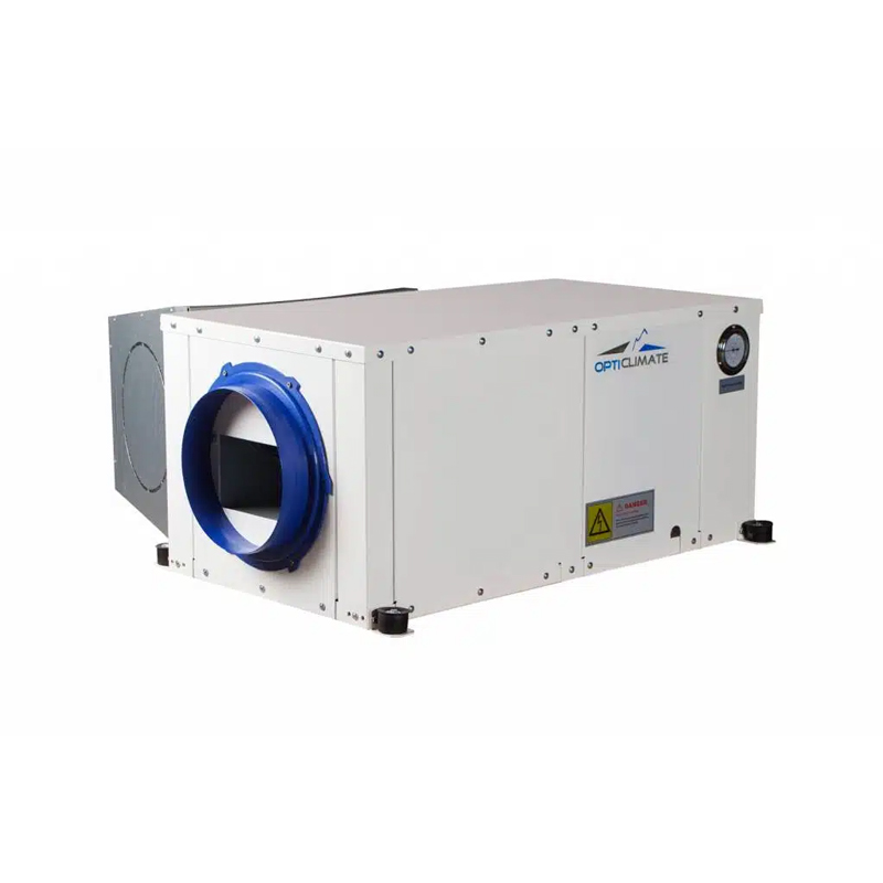 El OptiClimate refrigerado por agua enfría el aire utilizando agua como medio refrigerante y lo calienta utilizando elementos calefactores cerámicos. El OptiClimate tiene una entrada y una salida de agua.La entrada se conecta al suministro de agua. El agua fría se utiliza para enfriar el aire, elevando la temperatura del agua de 35°C a 50°C. A continuación, esta agua caliente se canaliza a través de la salida de agua o se recicla.