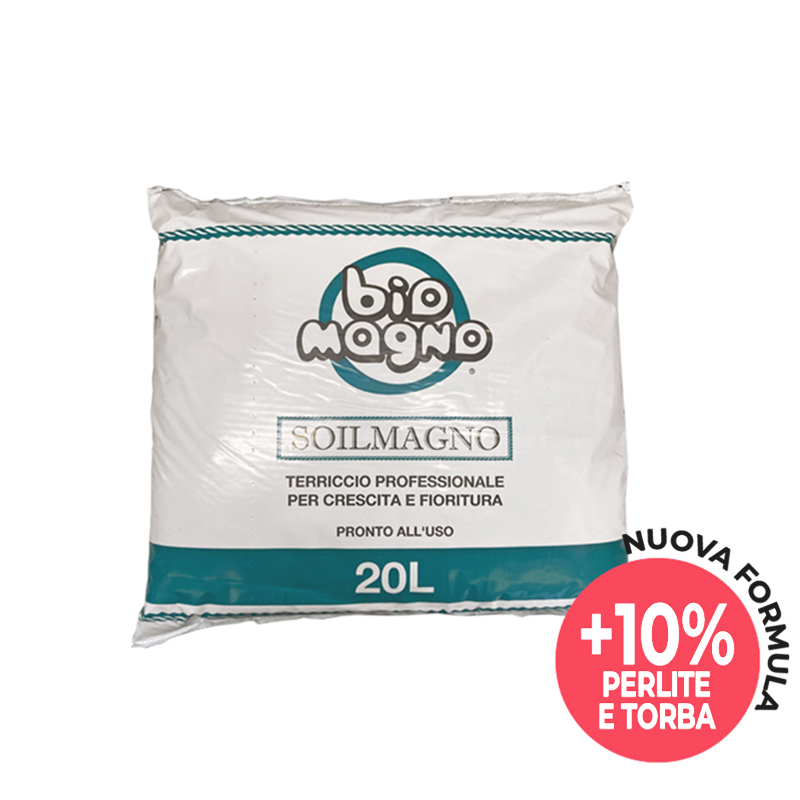 Soilmagno by Biomagno 20 litres est un terreau mélangé prêt à l'emploi composé dede tourbe blonde de haute qualité mélangée à du compost vert organique (autorisé en agriculture biologique) et à de la perlite qui font de ce terreau prêt à l'emploi un produit idéal pour toutes les phases de semis, de croissance et de floraison.