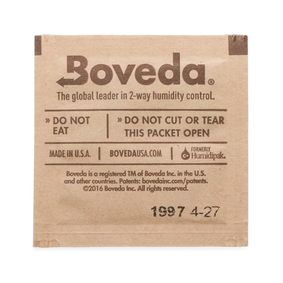 Les sachets Boveda brevetés placés à l'intérieur du conteneur maintiennent l'humidité relative stable et, si nécessaire, ajoutent ou absorbent de l'humidité pour maintenir le contenu à un niveau constant de 58 % (+/- 1 %).
