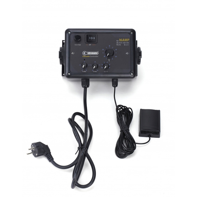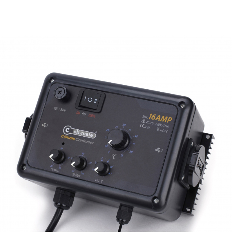 CLI-MATE CLIMA CONTROLLER est un contrôleur de ventilateur analogique qui permet de contrôler la température de la chambre de culture en modulant la vitesse d'extraction et d'introduction de l'air.
