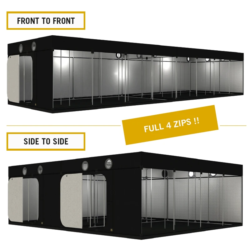• Les quatre côtés d'Intense peuvent être reliés entre eux (480 avec 480 et 600 avec 600), ce qui permet de créer des boîtes de culture personnalisées. En joignant les charnières verticales et horizontales, vous créez un espace impénétrable à l'air et à la lumière.
