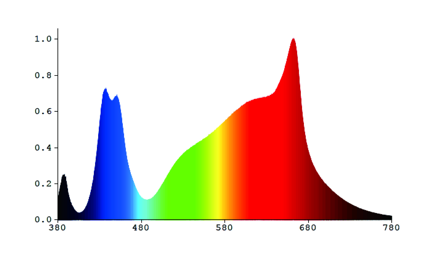Les lentilles à 110° garantissent une pénétration et une distribution uniques de la lumière, offrant un rapport PPFD/W jamais atteint, tandis que le flux lumineux total est du type TOTAL AGRO couvrant les longueurs d'onde de 380 à 780 nm.