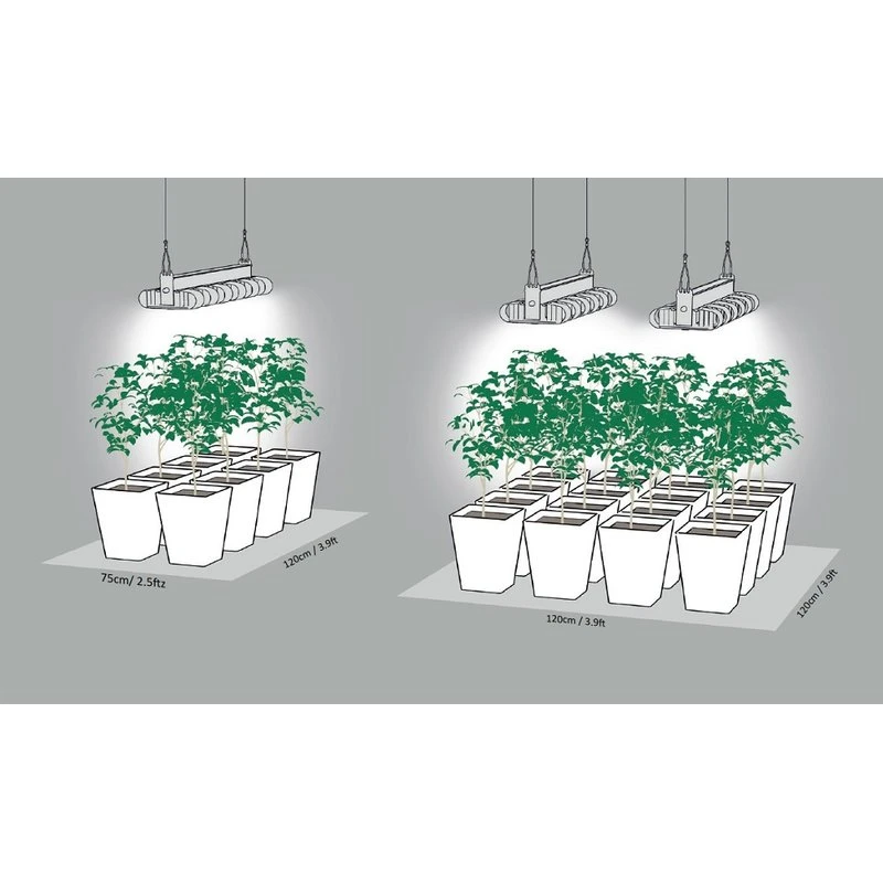 Grâce à cette fonction déjà intégrée, la performance de la lampe de culture peut être réglée de 10 à 100 %.