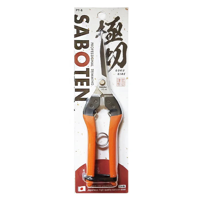 Fabriqués au Japon, les ciseaux de récolte SABOTEN sont robustes et bien faits. Fabriquées en acier au carbone japonais de haute qualité, les lames sont chromées et polies pour éviter de rayer ou de déchirer les plantes pendant la coupe. Ce modèle est équipé de lames de 48 mm de long. Il s'agit d'une paire de ciseaux robuste, aux performances solides et durable.