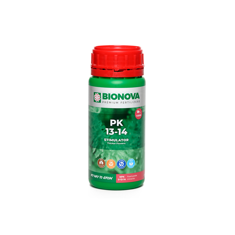 PK 13-14 è la combinazione perfetta e bilanciata di fosforo e potassio. Il fosforo attiva ed induce la fioritura delle piante trattate ed il potassio promuove e potenzia la fioritura ottenendo fiori esuberanti. È composto da minerali di qualità alimentare, una delle più pulite e pure forme di elementi minerali. PK 13-14 è direttamente assorbibile dall’apparato radicale e contiene bassissimi livelli di metalli pesanti i quali non si riscontrano nel prodotto finito. PK 13-14 dovrebbe sempre essere utilizzato in combinazione con uno dei seguenti fertilizzanti principali: Soil Supermix, Hydro Supermix, Aero Supermix, Autoflower Supermix o Longflower Supermix.