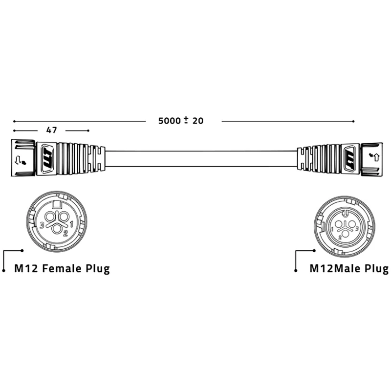 Questo cavo Control Link lungo 5 metri è progettato per collegare a margherita le tue luci LED controllabili LUMATEK, consentendo una connessione stabile e precisa senza alcuna interferenza. Basta collegare la spina maschio autobloccante M12 all’uscita della struttura a LED Signal Out e la spina femmina autobloccante M12 all’ingresso della struttura a LED Signal In dell’apparecchio successivo.