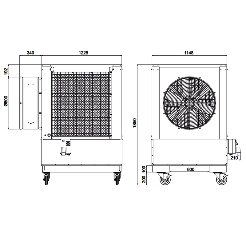 • Portata aria ventilatore: 18000m3/l