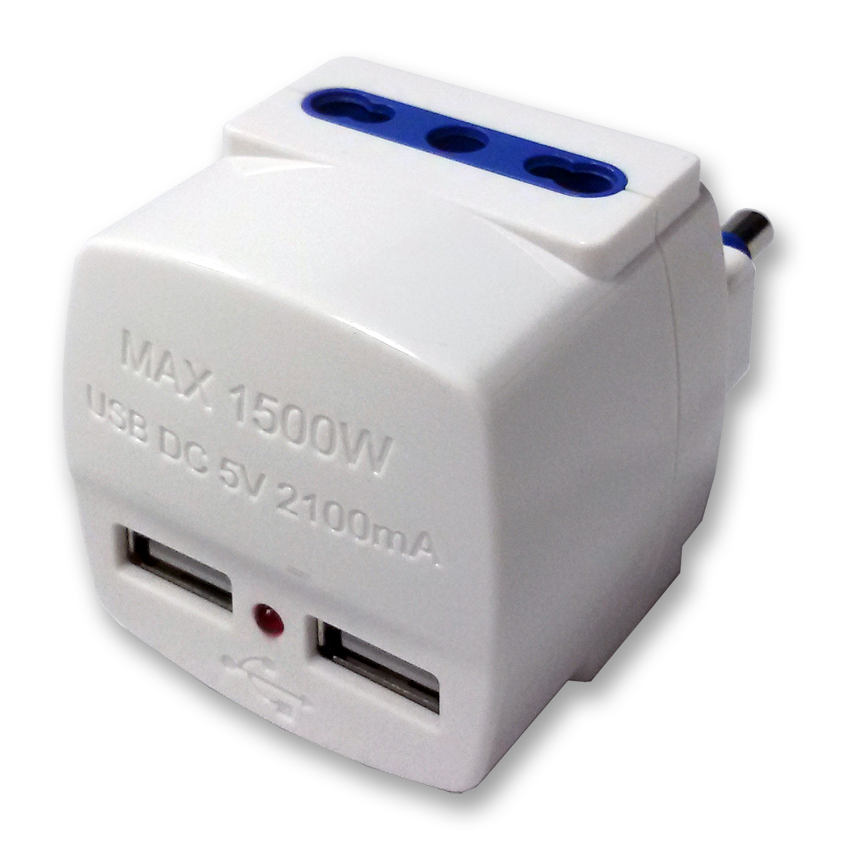 Steckeradapter mit 2 Steckdosen italienischer Stecker 16A und 2 Steckdosen USB 5V 2.1A