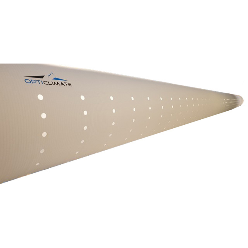 Los tubos de distribución de aire de tejido Opticlimate están fabricados con un material transpirable en el que se escapa muy poco aire, por lo que no se forma condensación en la parte inferior del tubo. Estos tubos se utilizan en aplicaciones profesionales en las que los goteos de condensación no son bienvenidos debido al goteo o a la formación de moho. El tubo tiene orificios pretaladrados en un patrón calculado para que la salida de aire sea paralela desde la parte inferior hasta el lateral del tubo.