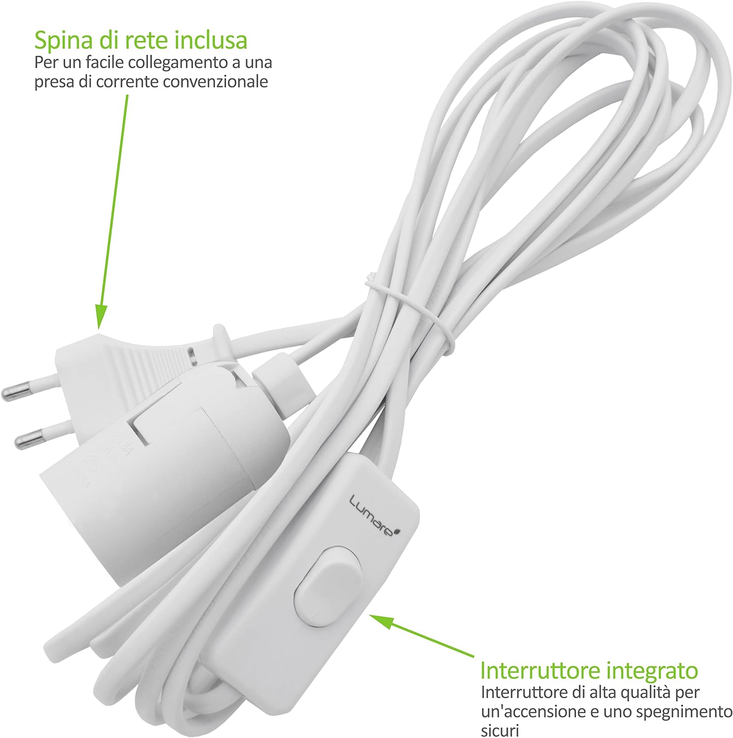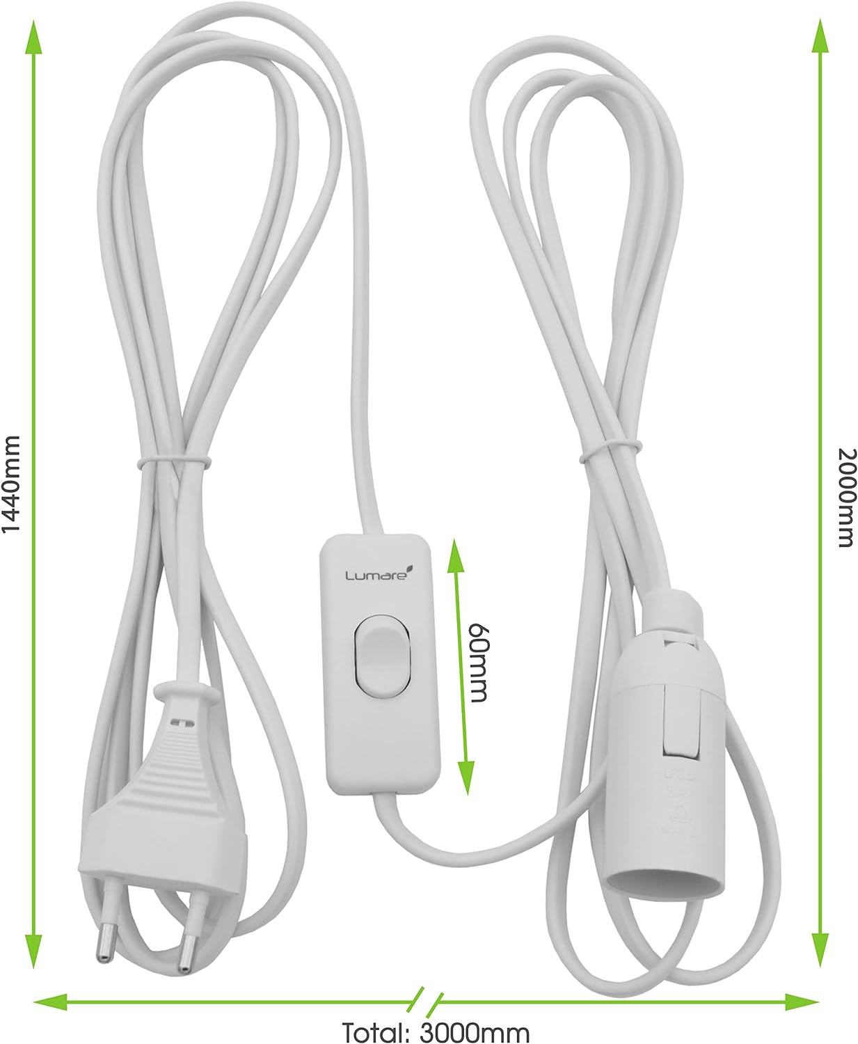 E27 Lampenfassung mit Stecker und Schalter, 3,5 Meter Kabel.