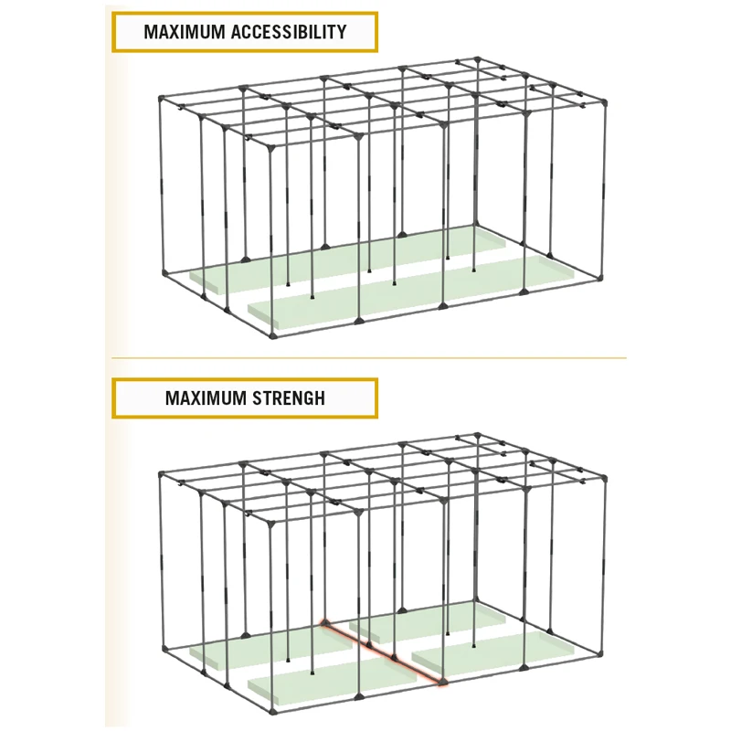 Der Intense ist für Pflanzen mit einer Höhe von 50 bis 150 cm ausgelegt und bietet Anbauflächen von 11,50 bis 21,50 m2. Ausgestattet mit einem 60 cm breiten Mittelgang, der den Zugang zu den Pflanzen sowohl von innen als auch von außen ermöglicht, bietet er je nach gewähltem Aufbau (Zugänglichkeit oder Festigkeit) einen oder zwei Anbaubereiche auf beiden Seiten des Ganges. Sie können den Gang auch weglassen und die gesamte verfügbare Anbaufläche nutzen, da SPACE BOOSTER und WEBIT separat erhältlich sind.