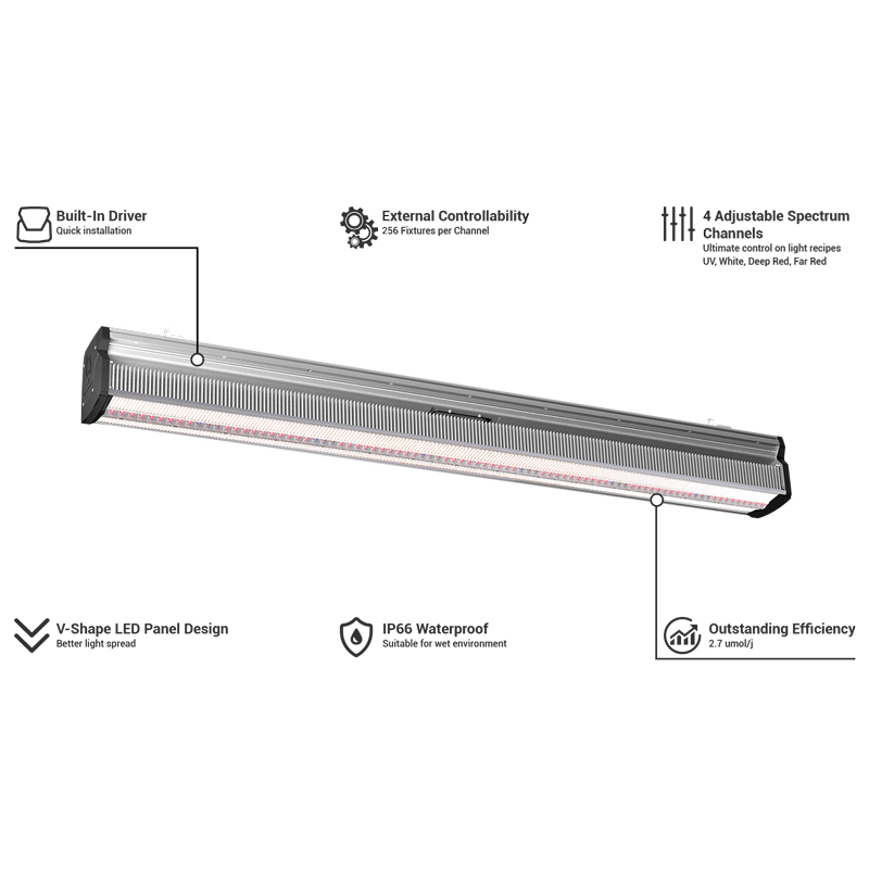 • Spectre réglable sur 4 canaux : UV, blanc, rouge profond, rouge lointain