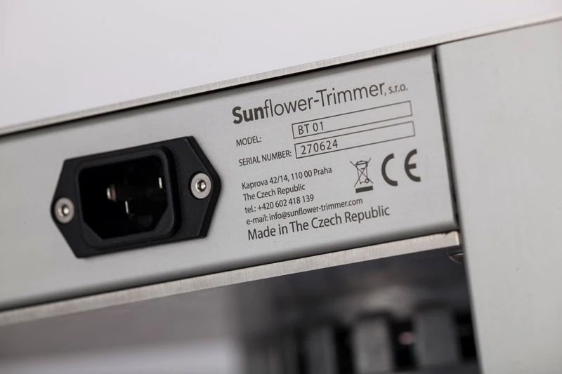 Der Baby Trimmer von Sunflower ist eine Pflanzenreinigungsmaschine, die entwickelt und gebaut wurde, um schnelle und präzise Arbeitsabläufe zu gewährleisten. Der Tragrahmen besteht aus eloxierten Aluminiumprofilen, die durch spezielle Verbindungen miteinander verbunden sind, während die Schneideablage des Trimmers aus poliertem Edelstahl besteht, um eine einfache Reinigung und maximale Hygiene zu gewährleisten.