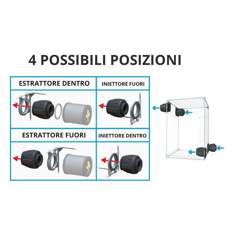 L'estrattore è studiato per il sistema Ducting Flange DF16 che consente di creare bocchette in qualsiasi punto della box e di semplificarne l’allestimento. Grazie al design 100% ermetico, potrete collegare facilmente filtri, tubi flessibili ed estrattori.