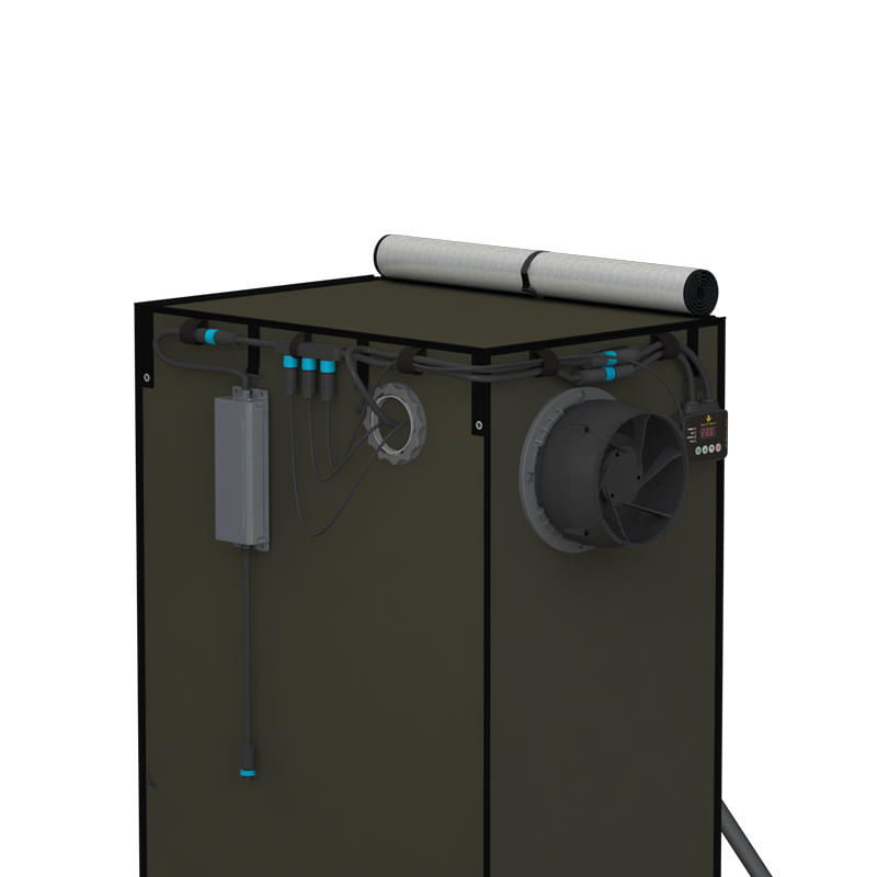 NESSUN ODORE, NESSUNA LUCE, NESSUN RUMORE Con l'involucro impermeabile al 100% alla luce, motori EC a bassa rumorosità, e filtro al carbone ad alta efficienza (venduto come opzione), questo kit di coltivazione diventerà il tuo compagno più discreto.