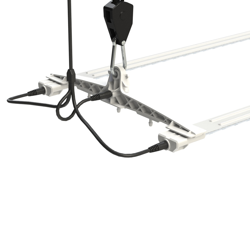 to grow areas of 40x120cm or 60x120cm by changing the position of the LED strips on the hook. The included power supply and suspension clips allow you to upgrade the kit to 120W by adding a third Cosmorow COP4065.