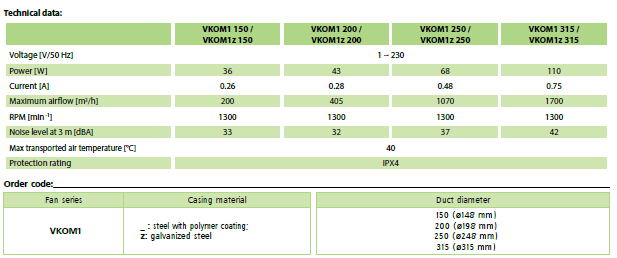VKOM1Z315 - VKOM1Z315 - VENTILATORE ASSIALE IN LINEA Ø 315 MM - 1700 m3/h -  MOTORE AC