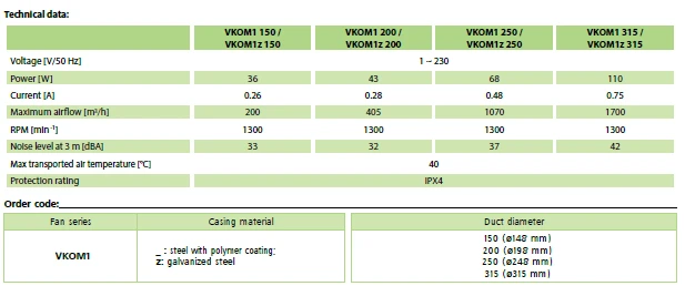 VKOM1Z315 - VENTILATORE ASSIALE IN LINEA Ø 315 MM - 1700 m3/h - ...